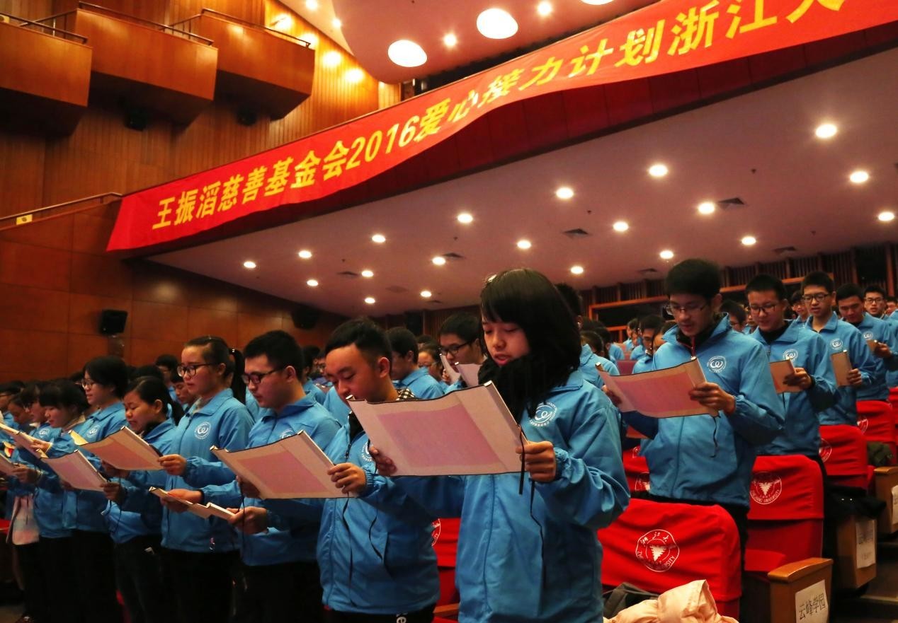 (图说:2016年11月王振滔慈善基金会“爱心接力计划”走进浙江大学)